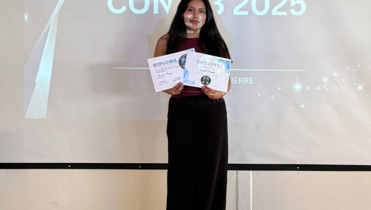 Kristell Paredes obtuvo tal distinción gracias a la presentación sobre la “Modulación de la Microbiota Intestinal a través del ejercicio de resistencia en personas mayores: Hacia un Envejecimiento Saludable”.