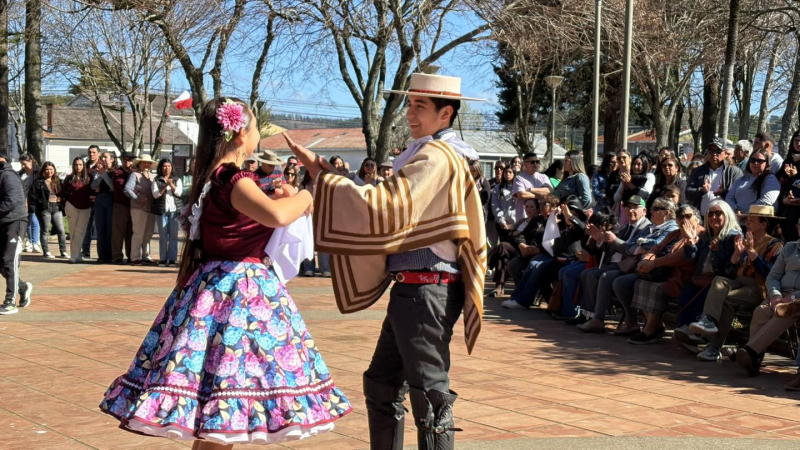El Taller de Cueca Semillita Cuequera, dirigido por Mario Sáez Cartes, deleitó al público con sus coreografías folclóricas, mientras que se entregó un reconocimiento a la pareja de bailarines Boris y María Antonia, quienes representarán a la comuna en el Provincial de Cueca Escolar.