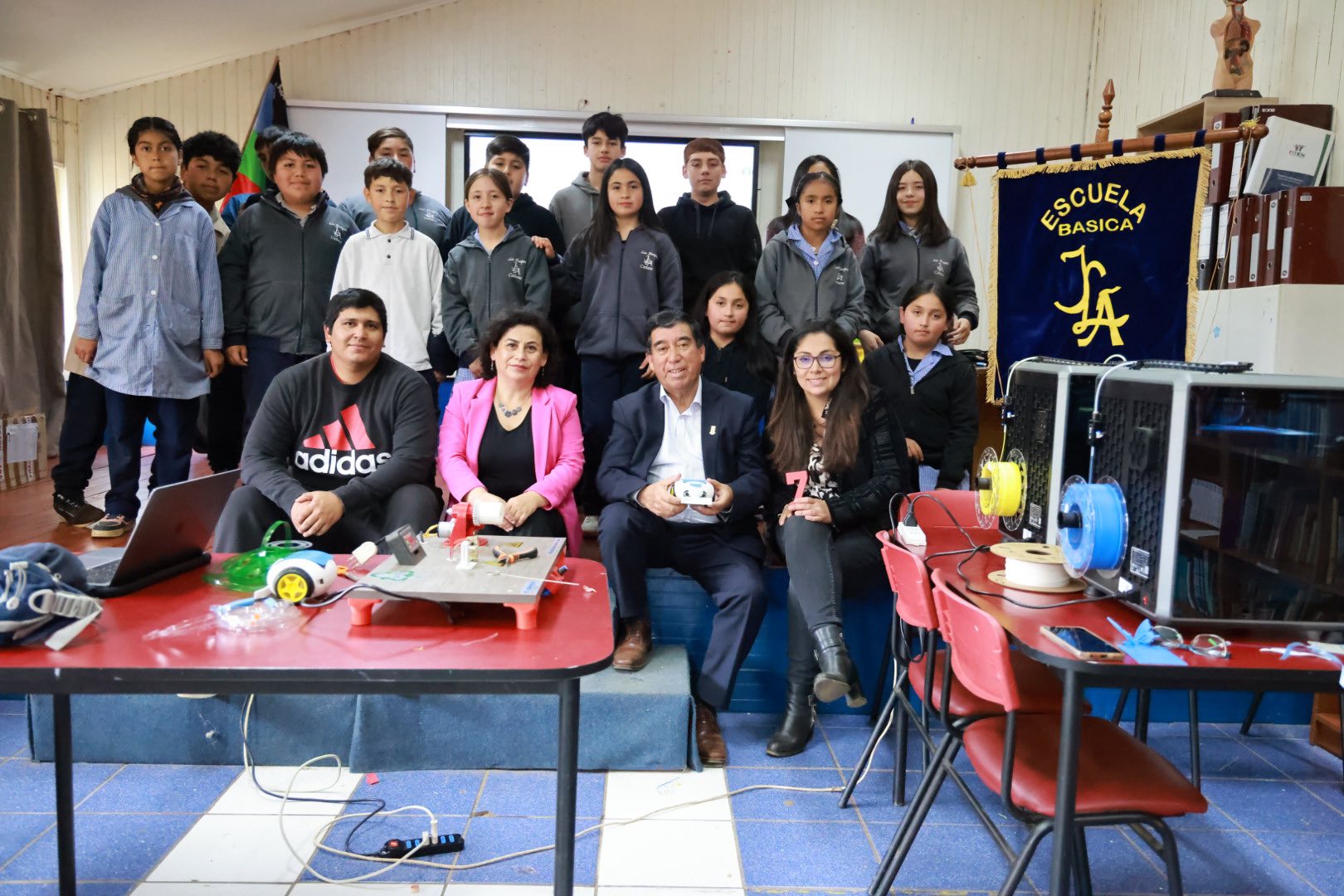 Visita a la Escuela Juan Lavín Alvear, ubicada en el sector de Huape, con el objetivo de conocer los avances del taller de robótica que desarrolla el establecimiento.