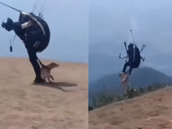 Hombre causa indignación al obligar a su perro a lanzarse en parapente